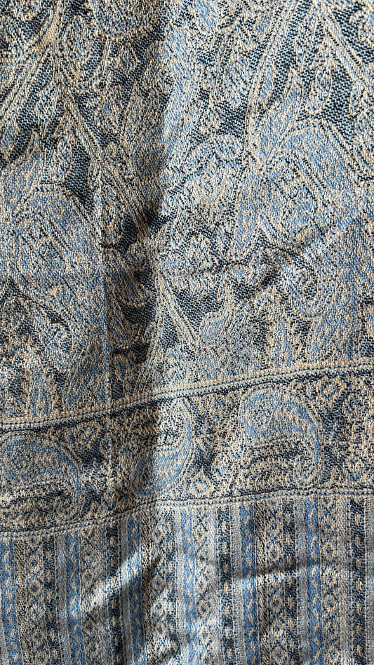 Sky Blue Embroidered Wool Shawl from Jerusalem