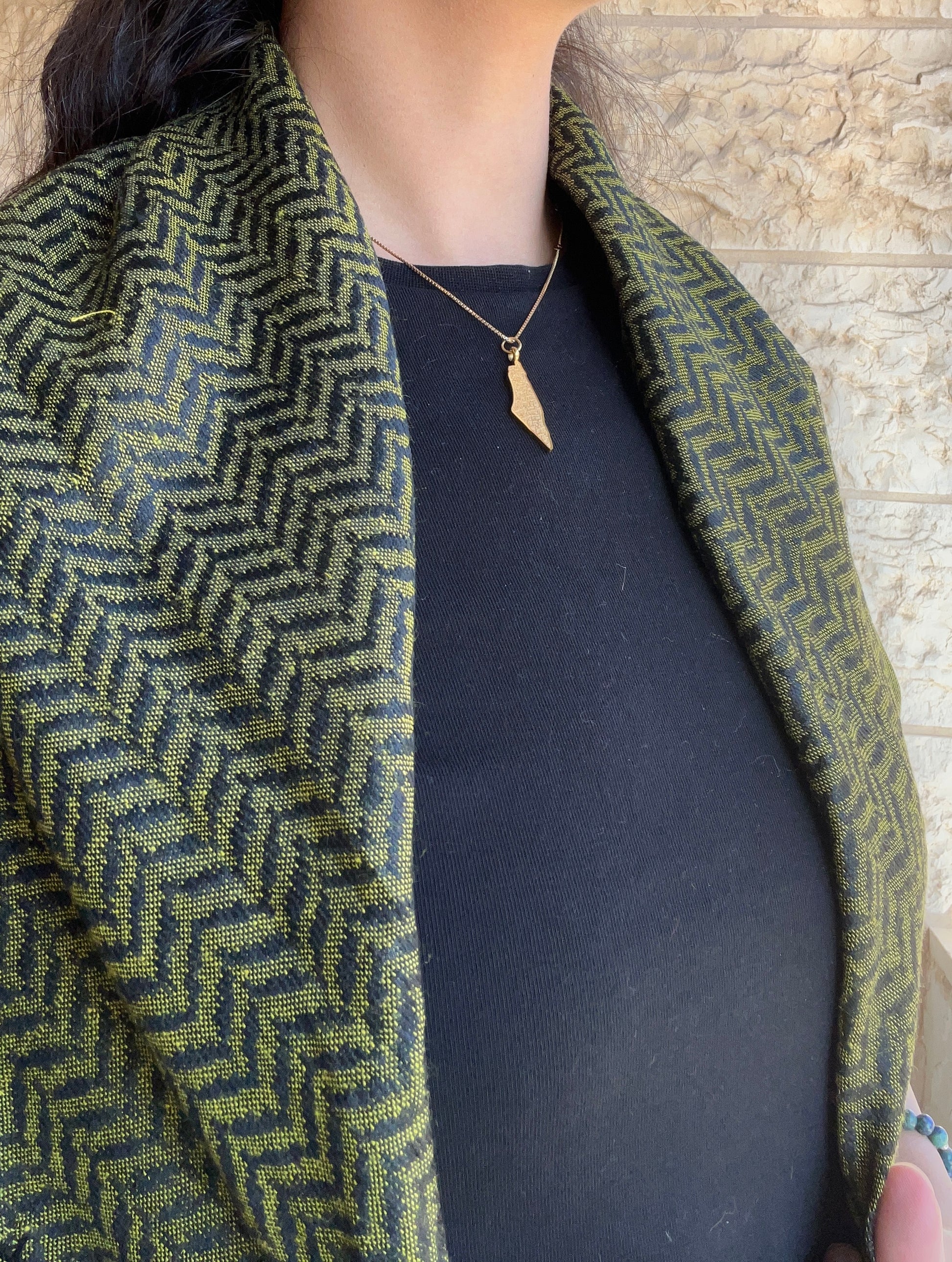 The kufiya’s pattern reflects the deep bond Palestinians have with their land. Its embroidery features three symbolic elements: